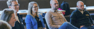 Met je team, je peers, je organisatie en de bredere context.